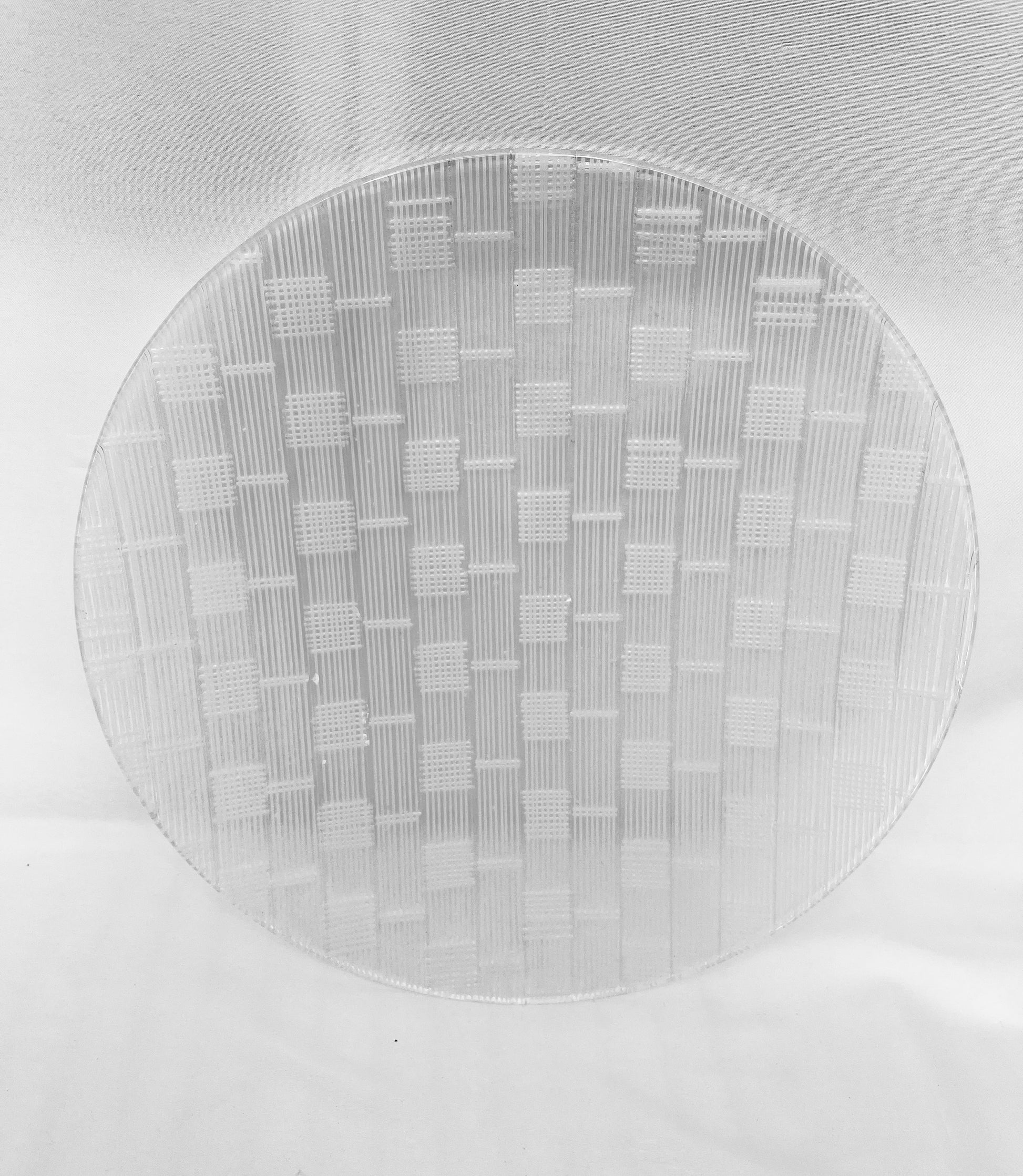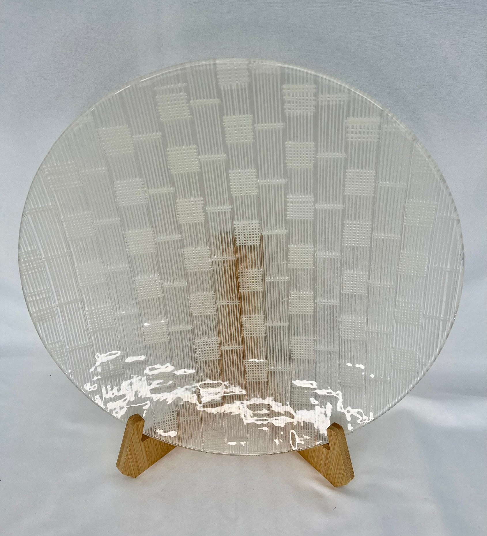 A delicate layout of cream glass stringer laid onto cut circle of glass. Perfect table centrepiece. Size varies as required - approx 35-38cm.